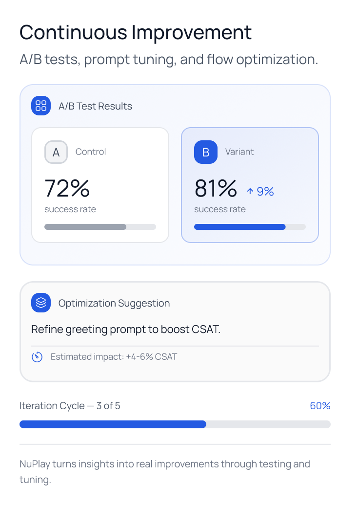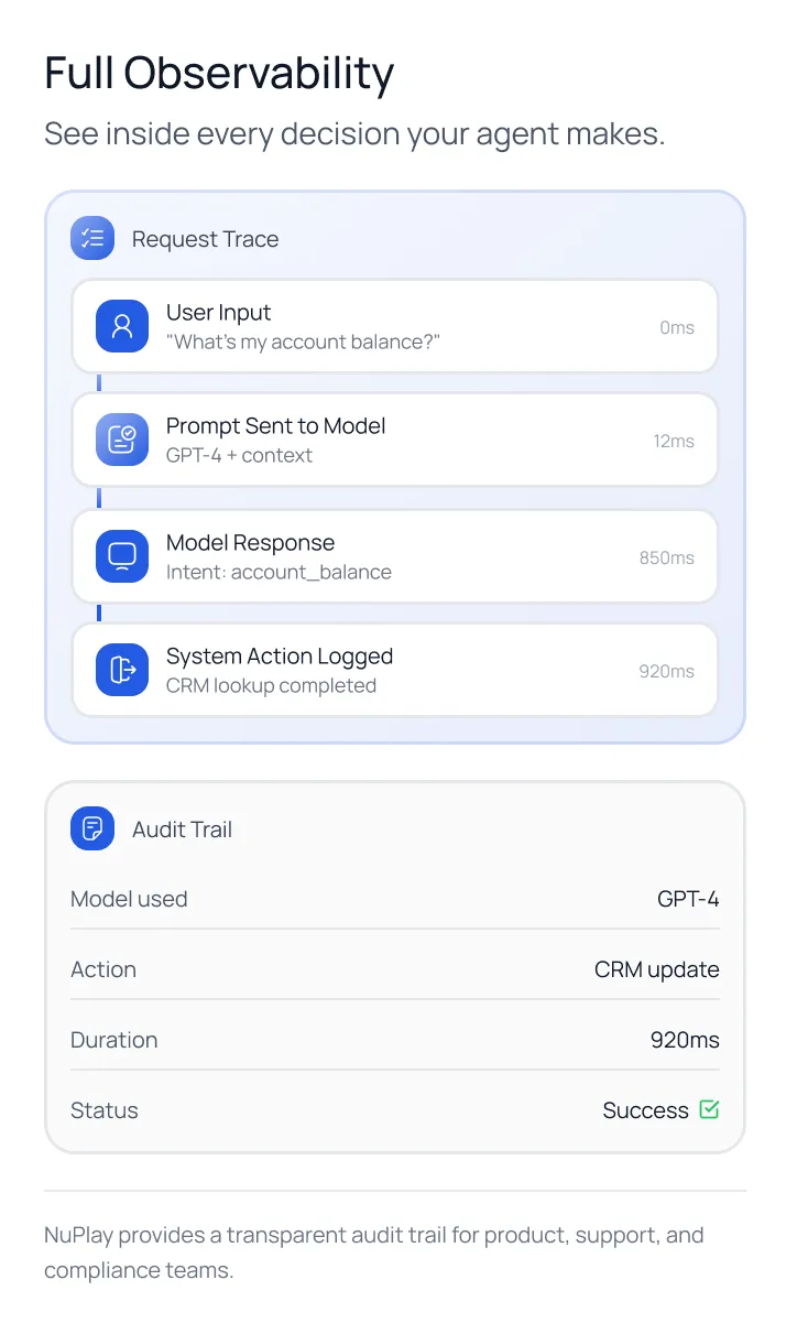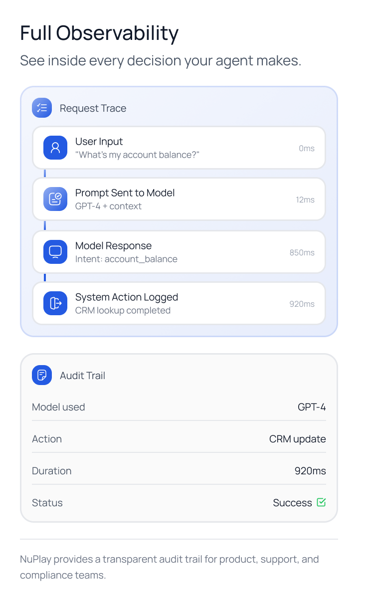 NuPlay is a real-world AI voice agent platform that unifies orchestration, integrations, observability, and enterprise-grade security, bringing the entire agent lifecycle into one production-ready solution.