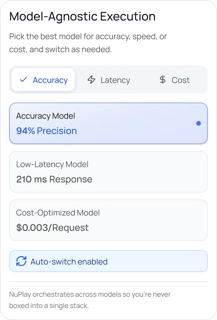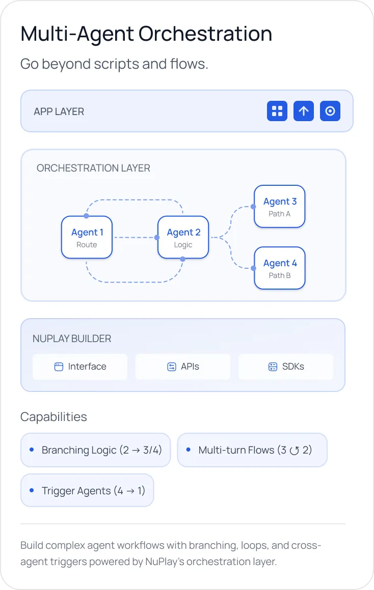 Most platforms stop at giving you building blocks, but NuPlay delivers real business outcomes by owning the orchestration. It acts as your expert implementation partner every step of the way.