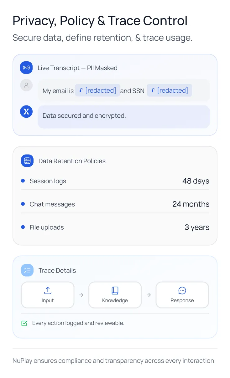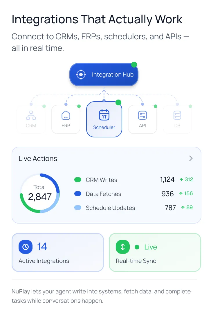NuPlay is a real-world AI voice agent platform that unifies orchestration, integrations, observability, and enterprise-grade security, bringing the entire agent lifecycle into one production-ready solution.