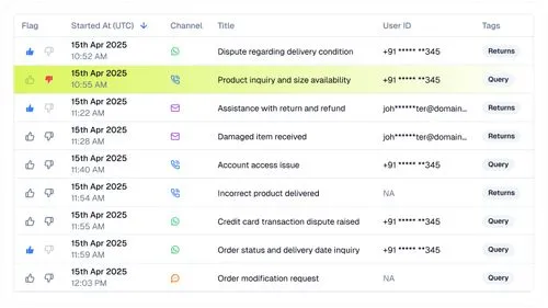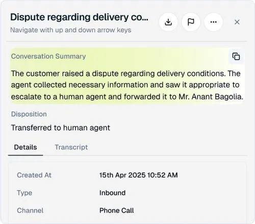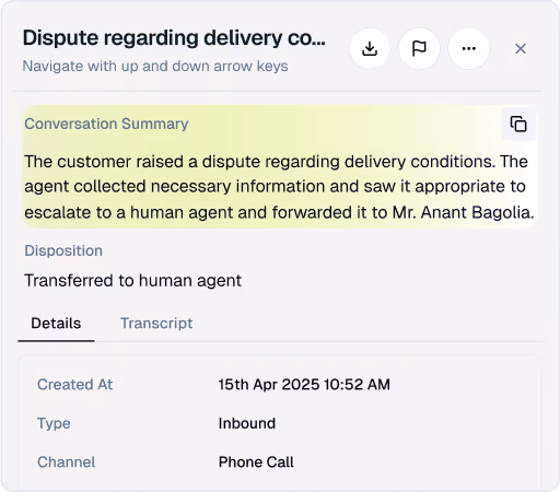 Stay on top of every interaction with live metrics like response time, containment, resolution rate, intent accuracy, and escalation frequency so you always know how your agents are performing in the real world.