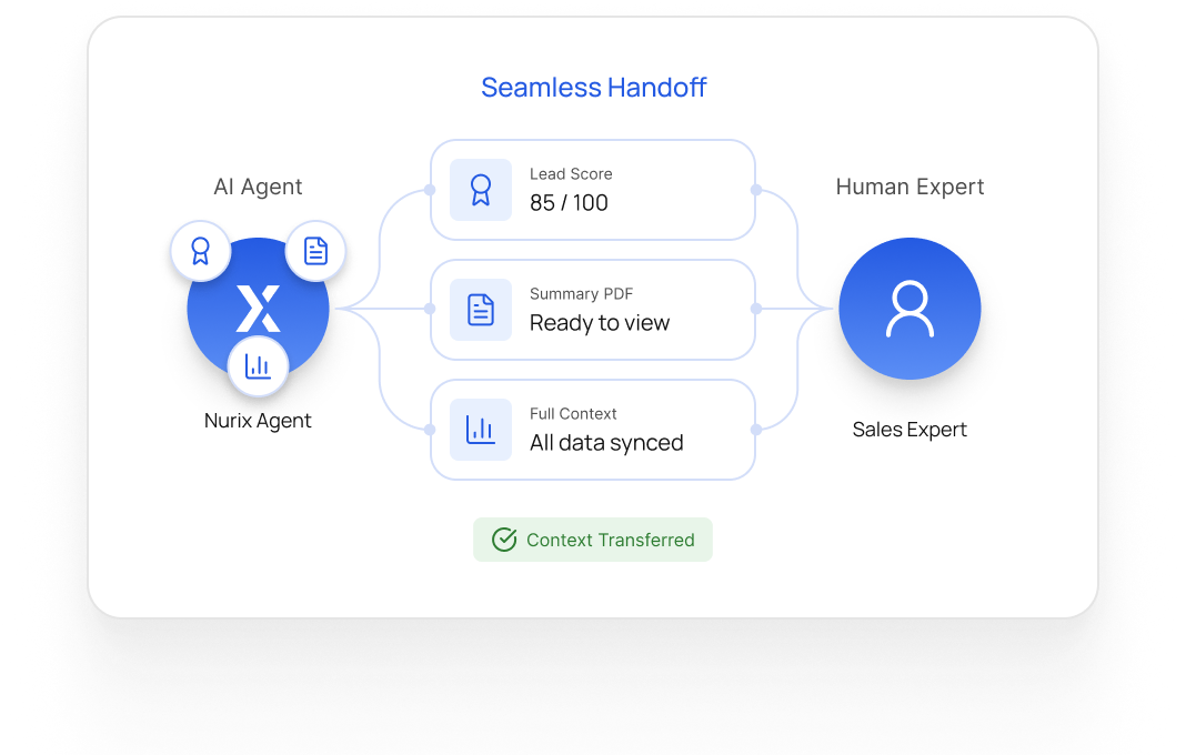 Nurix’s AI agent is always available to engage prospects on chat, voice, or messaging. It instantly answers questions about listings, documentation, or financing, and recommends properties based on preferences. With intelligent support, every lead stays engaged without delay.