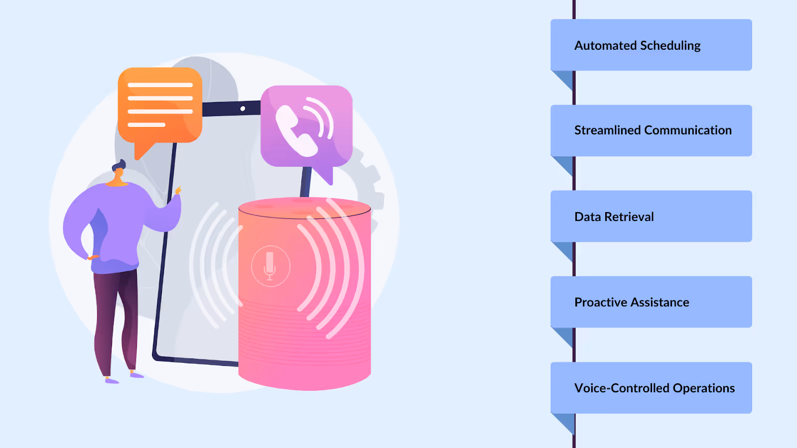 Faster Decision-Making: With real-time data processing, AI voice assistants can provide instant insights and recommendations so you can make decisions faster. This ability to react to changing conditions is priceless in fast-paced industries like finance and tech.